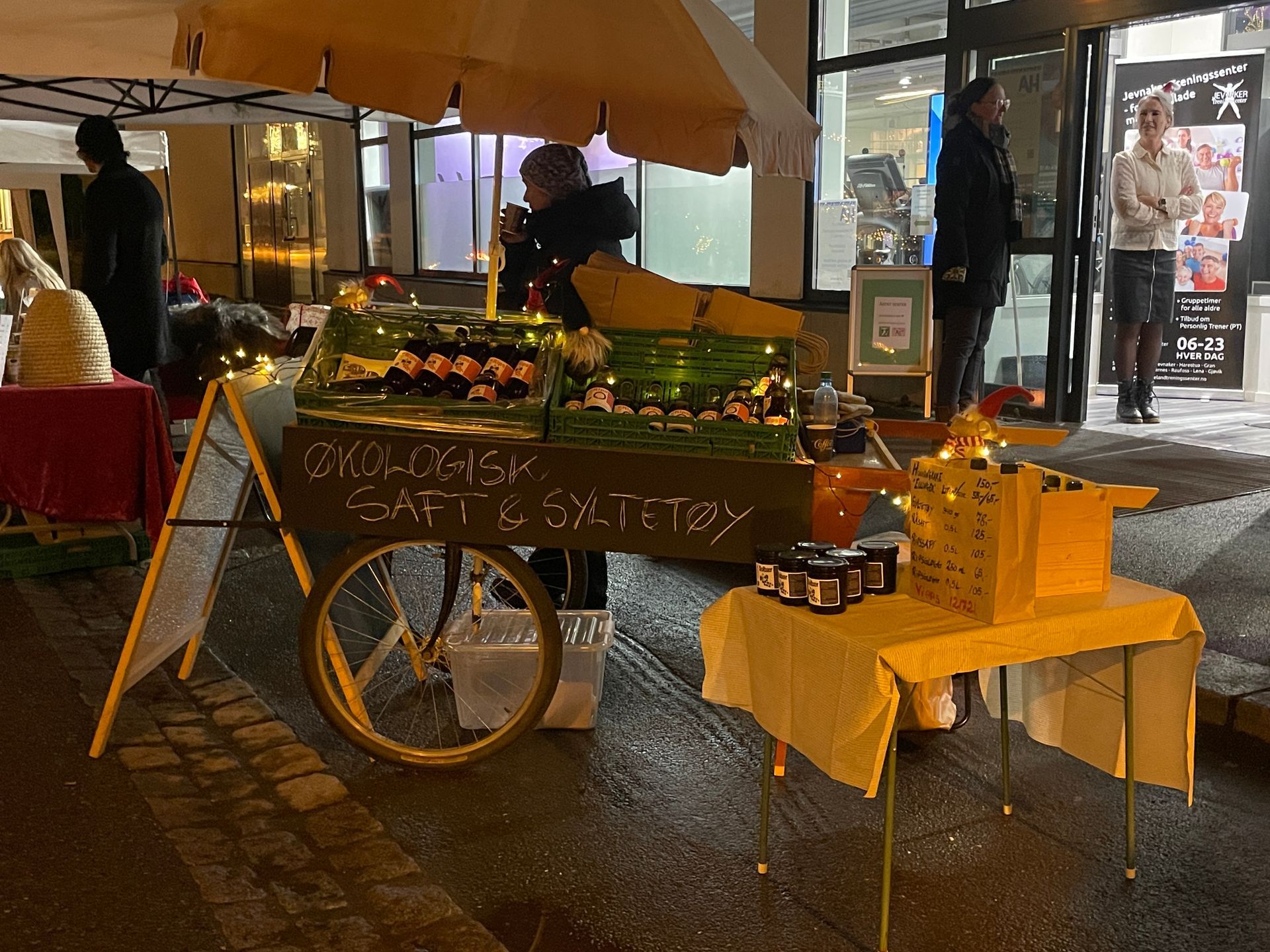 kommer til markedet med saft, syltetøy og honning. Fast innslag på julemarkedet, med nydelige og kortreiste produkter.